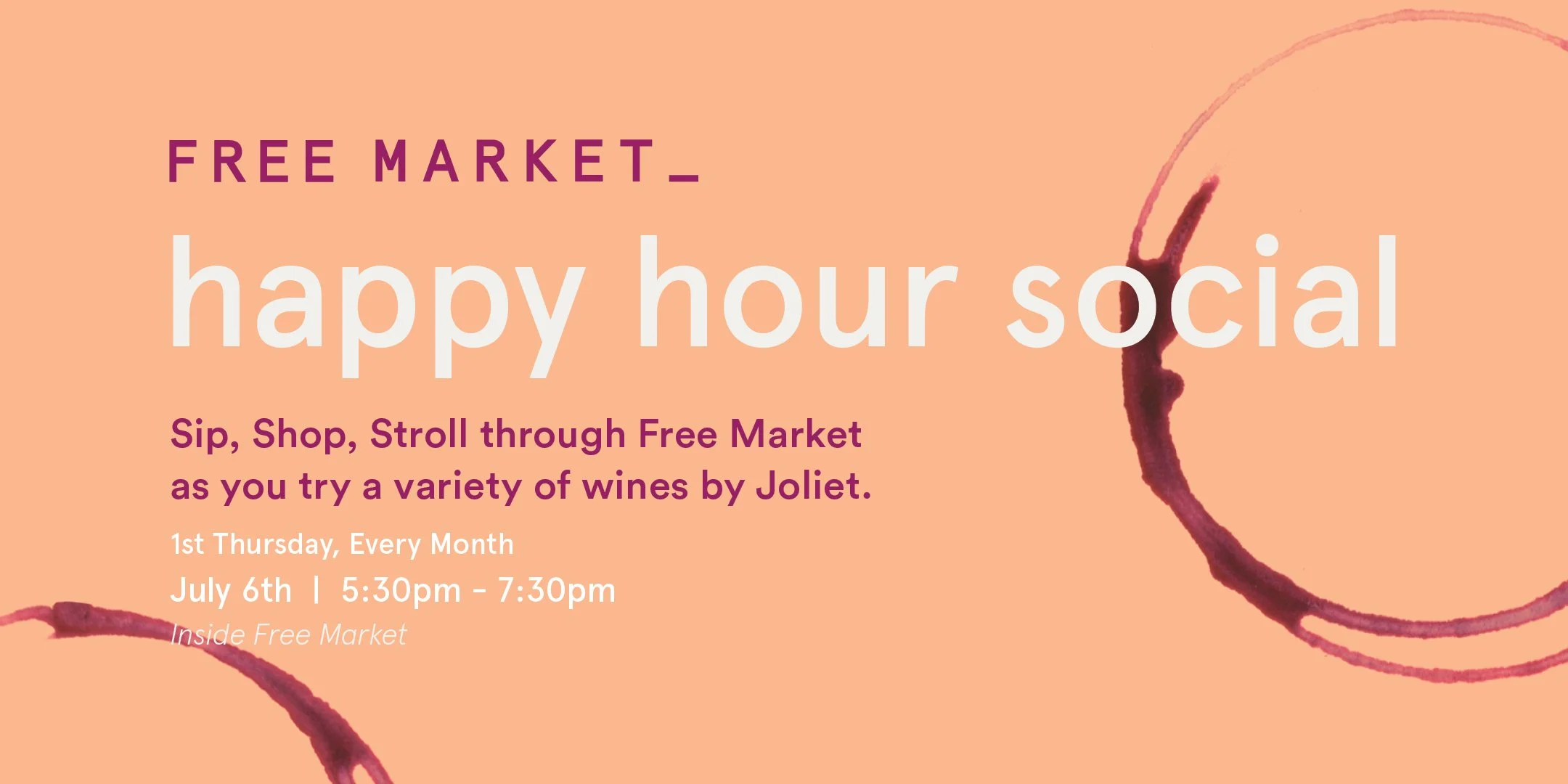 Sip, Shop, Stroll Through Free Market as you try a variety of wines by Joliet. Enjoy retail specials, pop-ups, cool exhibits and a live DJ set.