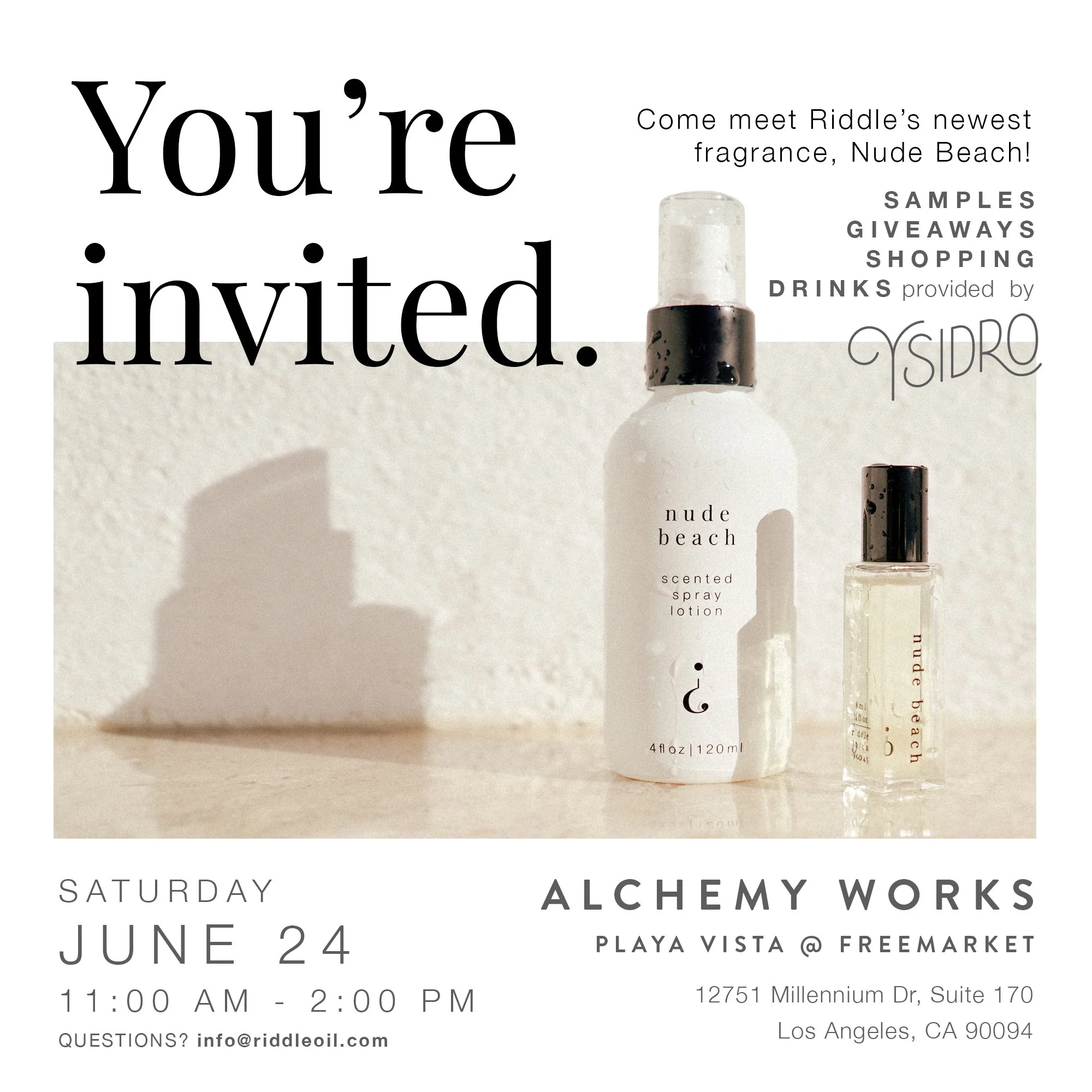 Join us this weekend over at Alchemy Works located in Free Market, to celebrate Riddle Oil in launching their new scent this weekend with a day full of events!