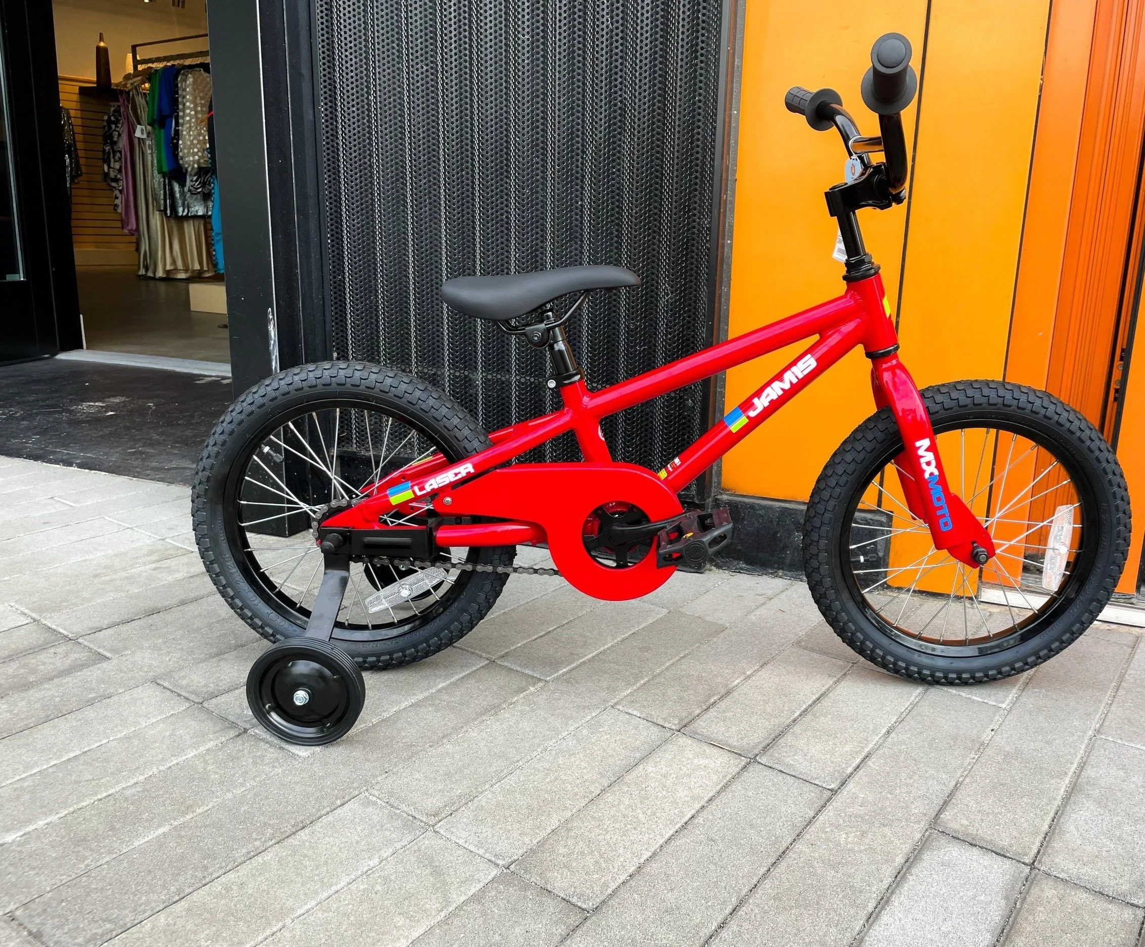 Their first bike needs to be fun, comfortable and safe! Laser 16 features a lightweight aluminum frame, removable training wheels, and BMX-style handlebars and saddle.