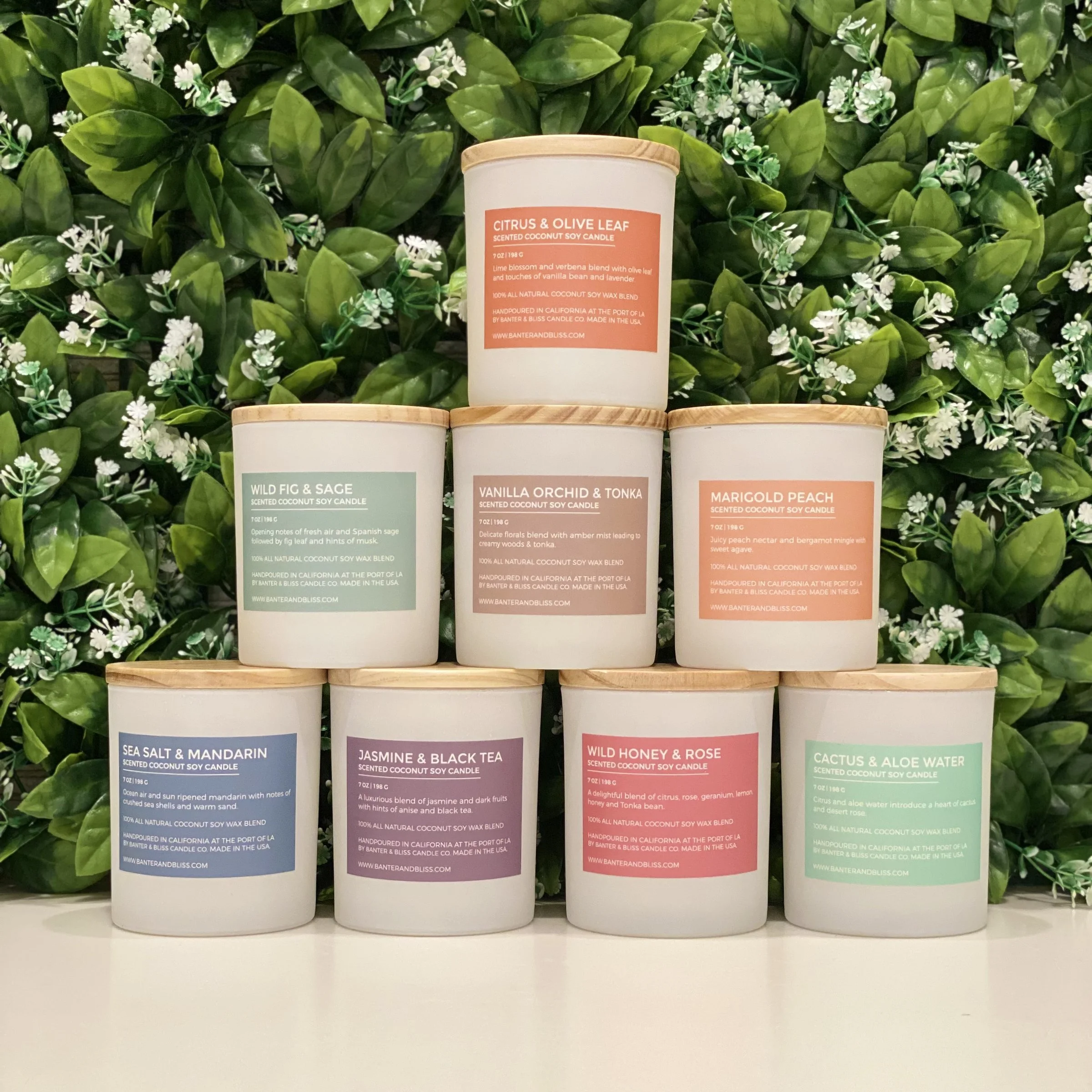 All natural coconut wax blend and scented with fragrance oil & essential oils. Banter & Bliss has a scent that is bound to bring joy to the Holidays!